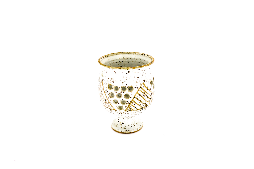 Fille pokal formet fyrfadsstage i keramik, glassur med brune detaljer i sandfarver